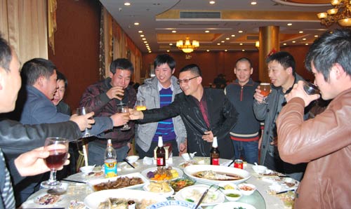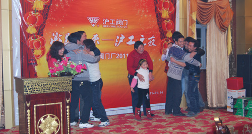 上圖為晚會(huì)上楊總向員工敬酒為大家祝福,并組織員工參加“找朋友”游戲,外貿(mào)部袁艷女士為大家?guī)硪皇住冻;丶铱纯础贰?/strong>